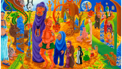 Wie in einem Bilderbuch kann der Betrachter immer neue Geschichten „lesen“ zwischen phantastischen Wesen, obskuren Zeremonien,